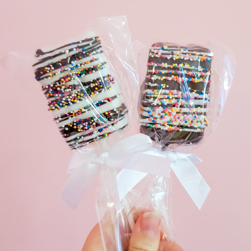 These fudge truffles have a milk chocolate fudge center coated in white chocolate and decorated to perfection.